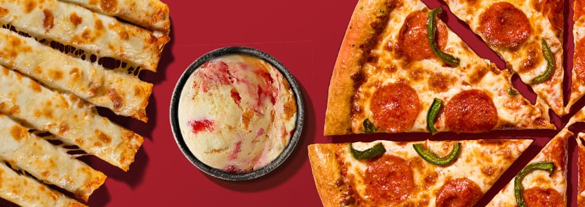 Large 2-Topping Pizza, Single Original Topperstix, and a pint of Frozen Custard for $24.99.